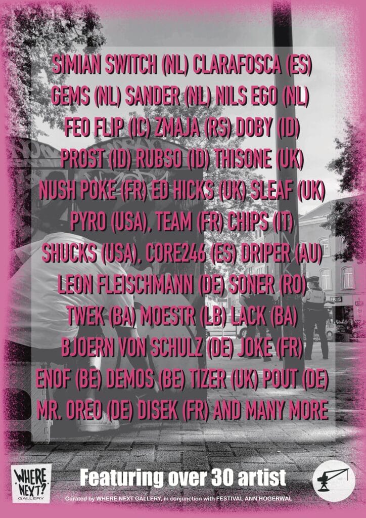 Prost (INDONESIA) Chips (ITALY) Pyro (USA) Gems (NETHERLANDS) Pout (GERMANY) Sander (NETHERLANDS) Feo Flip (CANARY ISLANDS) Zmaja (SERBIA/CANADA) Clarafosca (SPAIN) Doby (INDONESIA) Rubso (INDONESIA) ThisOne (UK) Sleaf (UK) Nush Poke (FRANCE) Ed Hicks (UK) Team (FRANCE) Simian Switch (NETHERLANDS) Shucks (USA/UK) Core246 (SPAIN) Driper (AUSTRALIA) Nils Ego (NETHERLANDS) Moestr (LEBANON) Leon Fleischmann (GERMANY) Soner (ROMANIA) Tizer (USA/UK) Prazivian (BOSNIA) Lack (BOSNIA) Bjoern von Schulz (GERMANY) Disek (FRANCE) Mr Oreo (GERMANY) Joke (FRANCE) Enof (BELGIUM) NDEC (Japan) DEMOS (Belgium) Anoy (SWITZERLAND)